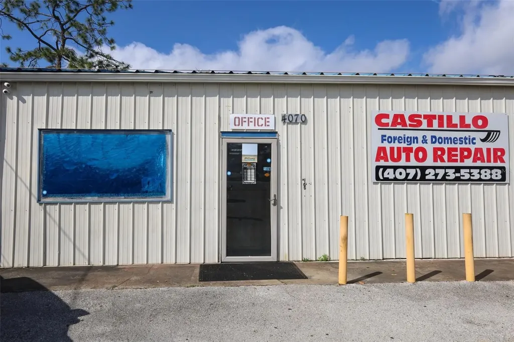 Prime opportunity to own a well-positioned mechanic shop/retail property located at 4070 S Goldenrod Rd in a high-visibility commercial corridor. This approximately 3,996 SF Class B building, built in 1978, is zoned C-2, allowing for a variety of commercial uses. The property is equipped with 6 lifts and 2 service bays, making it well-suited for automotive repair operations. Additional features include two bathrooms, a customer waiting room, a reception office area, security camera system, and a 3-car storage shed in rear of property, providing functional workspace and operational convenience. The site offers up to 12 parking spaces with excellent accessibility and strong traffic exposure. Recent improvements include roof repairs completed in August 2004 and a new A/C system installed in July 2025. Ideal opportunity for an owner-user or investor seeking a well-located commercial asset with established automotive infrastructure in a thriving Orlando submarket.
