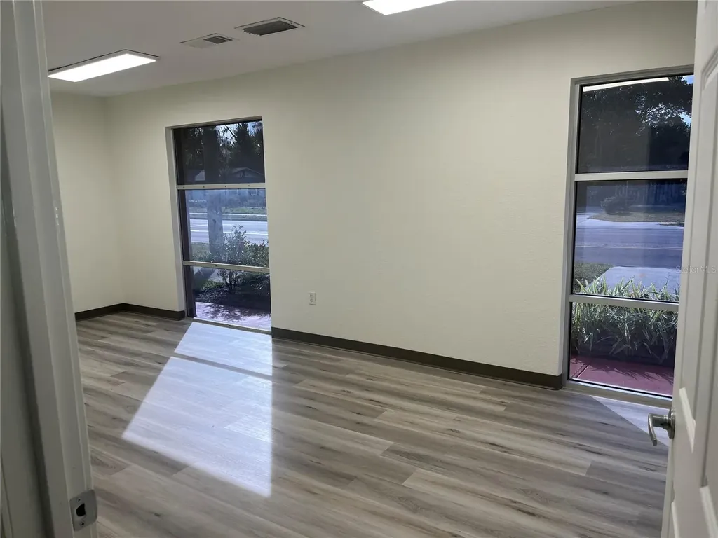 Beautiful newly renovated 1,459 square foot office for medical or business use fronting busy W. Plymouth Ave in DeLand. There is a bright reception area, a large conference room, a receptionist nook, four offices, a kitchen, and two bathrooms. New flooring, doors, lighting, paint, and fixtures. Centrally located close to downtown DeLand, Advent Health Hospital, and Stetson University. Beautiful gardens on the property allow you to sit for a relaxing lunch break or step away from the busy office for a phone call: On-site property management. The tenant community is very friendly and welcoming, and the property manager is responsive and nice to deal with. Professionally maintained landscaping throughout the complex.